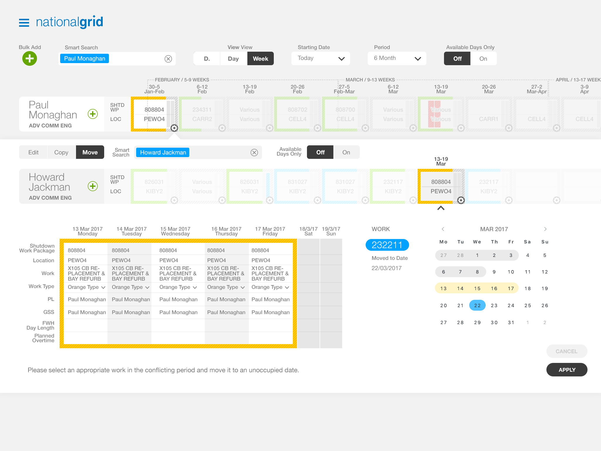 Web and iOS application designed to manage engineer’s calendars and work plans.
