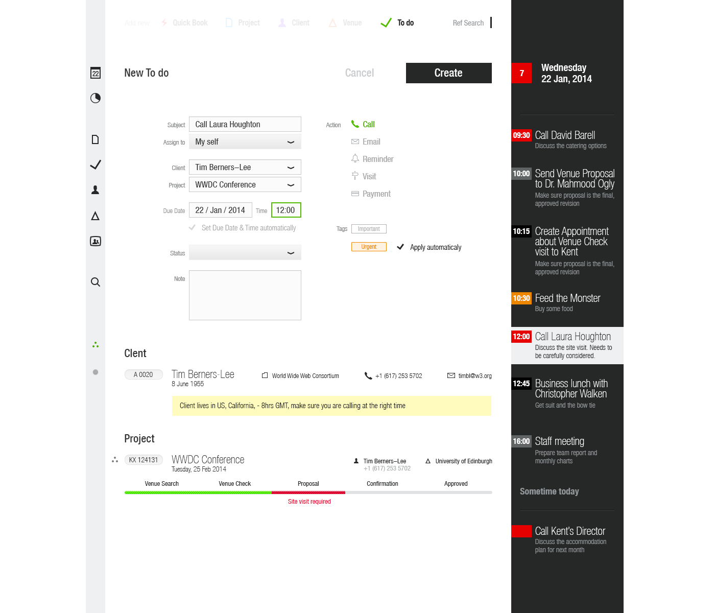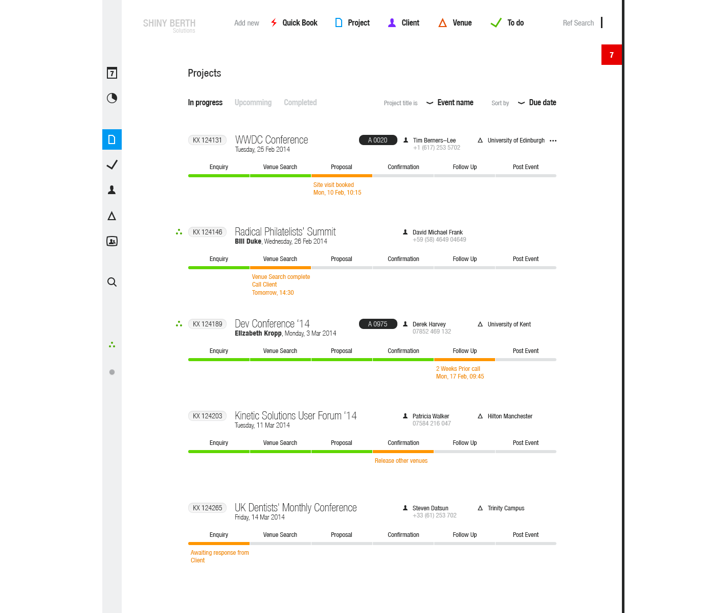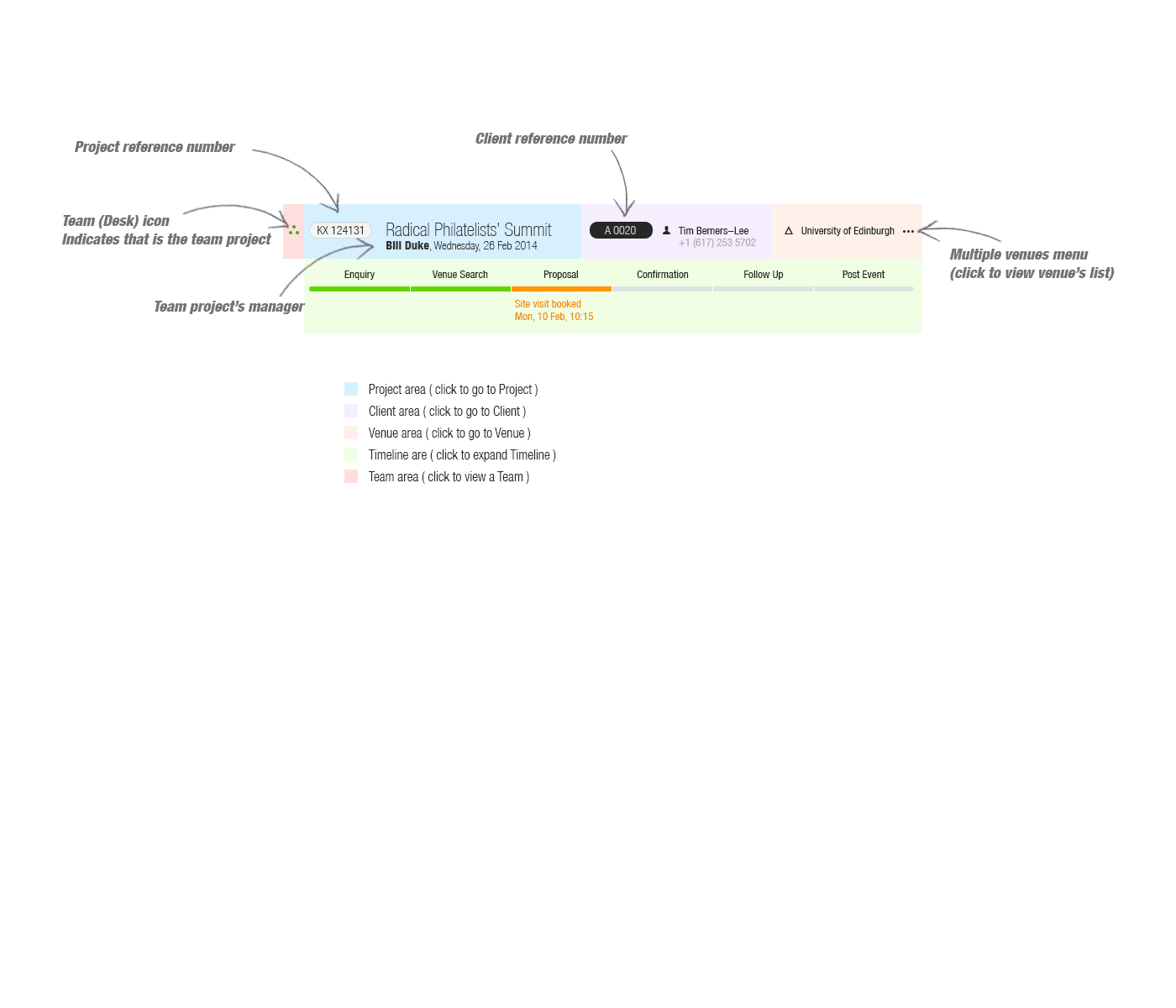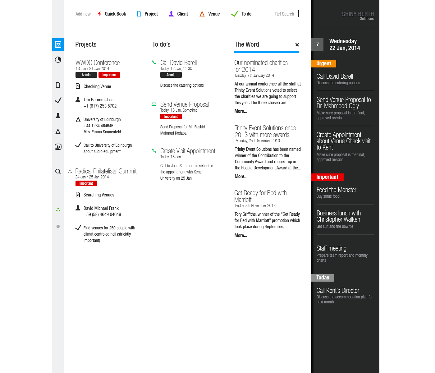 This desktop web application has been designed for Venue Event’s managers to make the booking venue process as slick as possible and visually simple and intuitive.