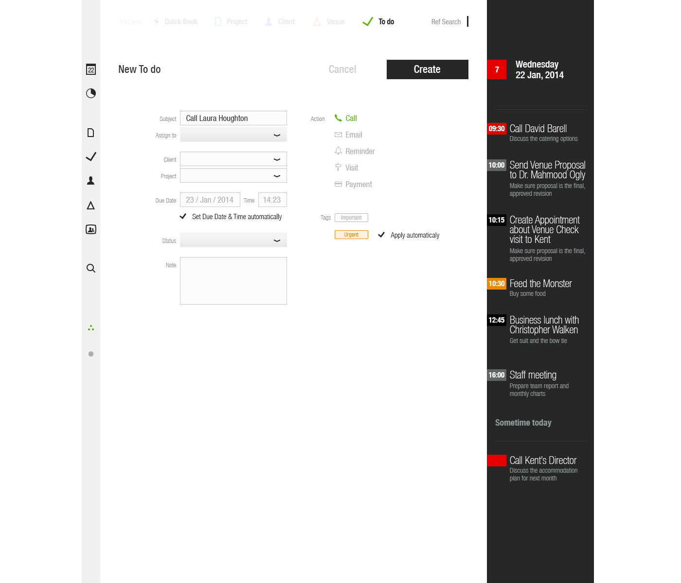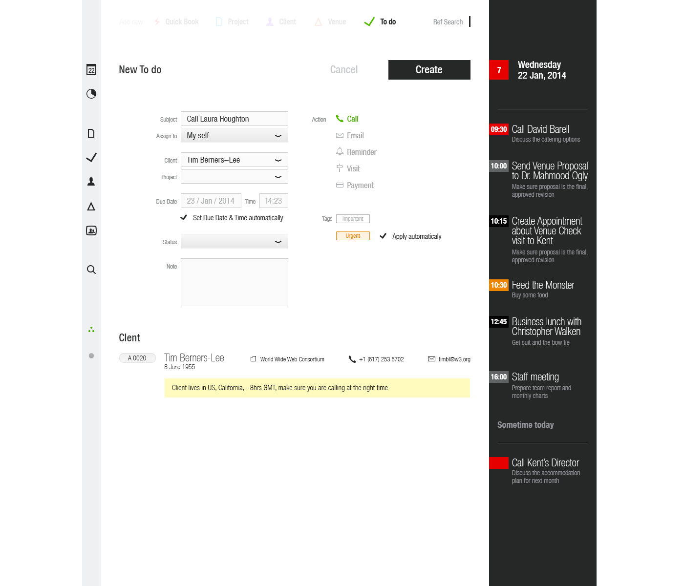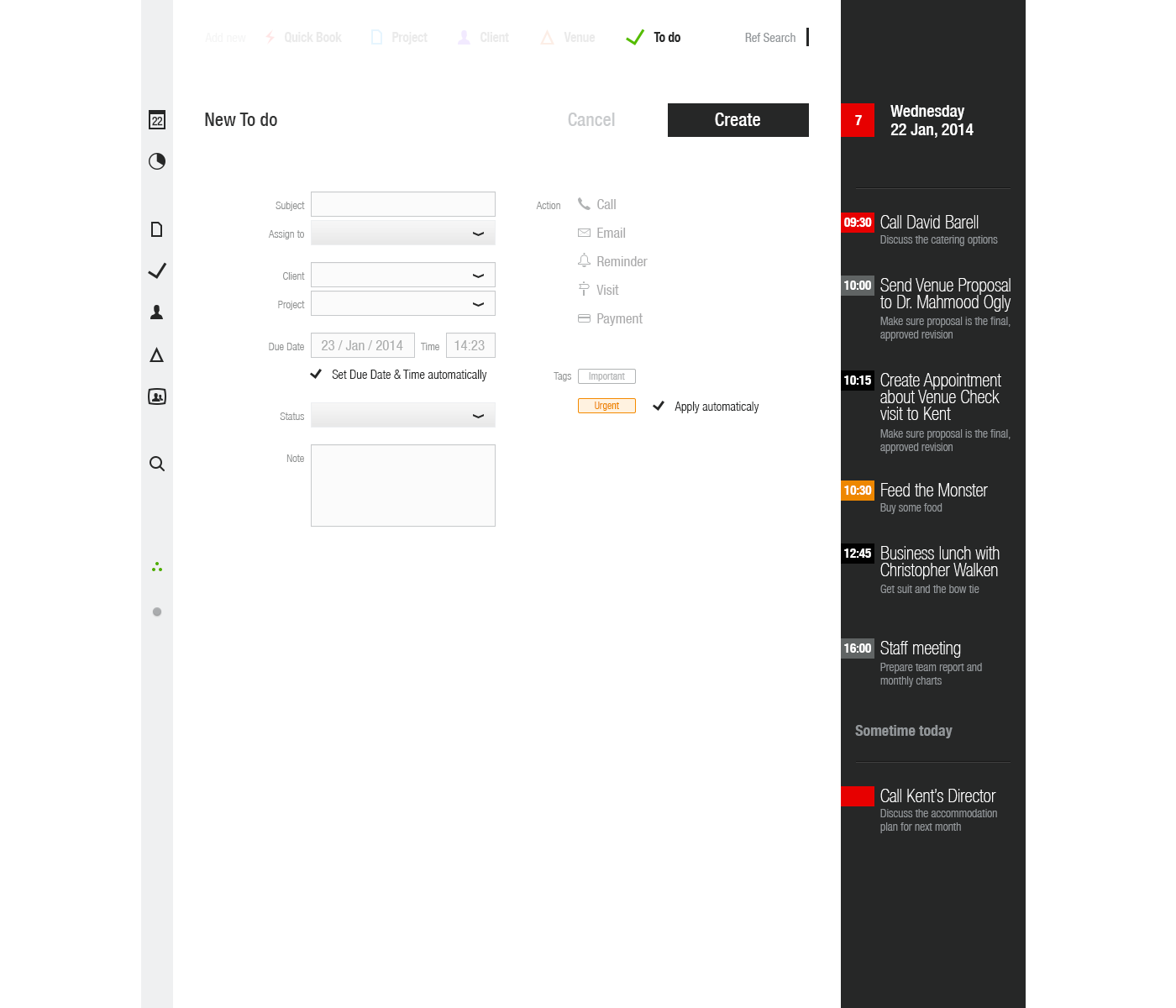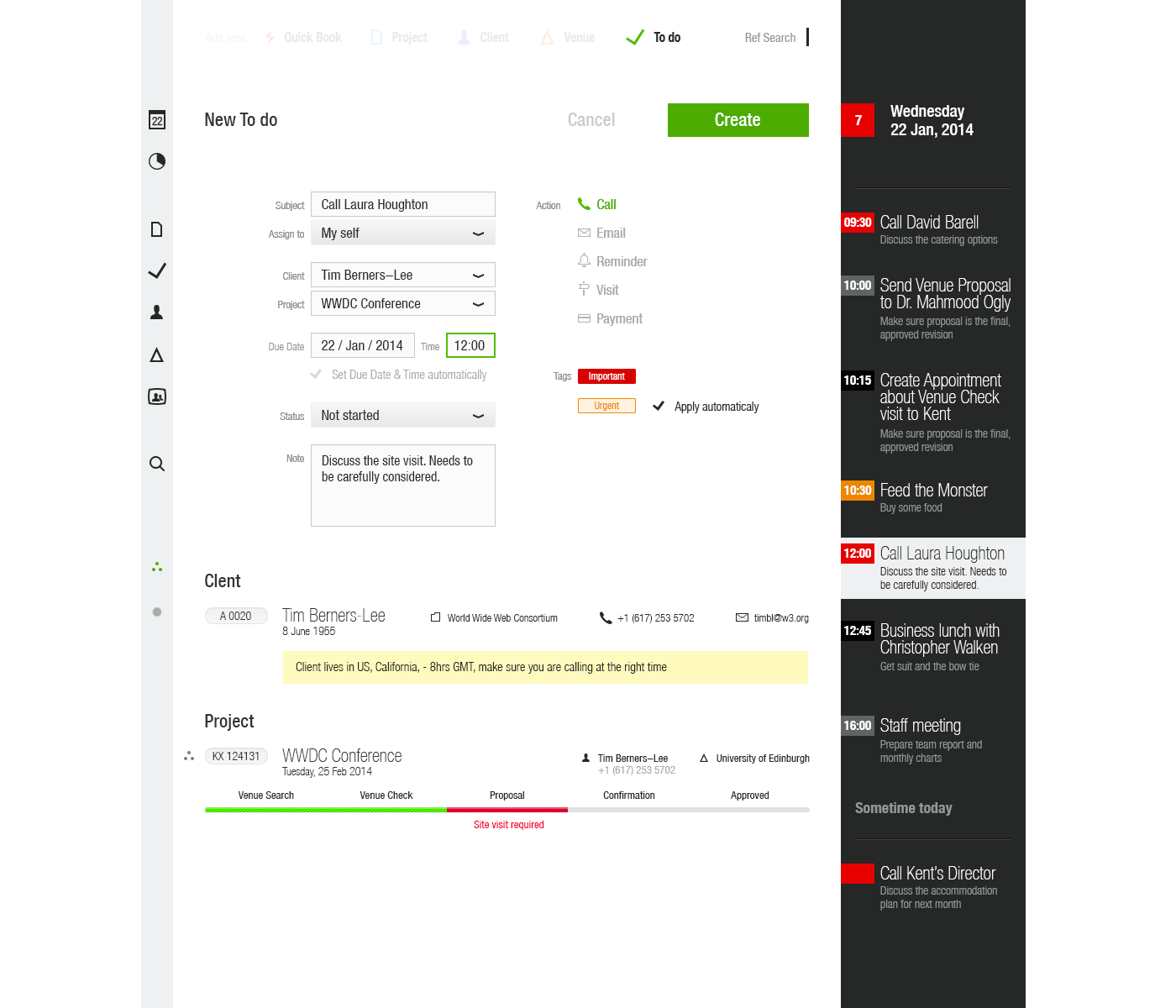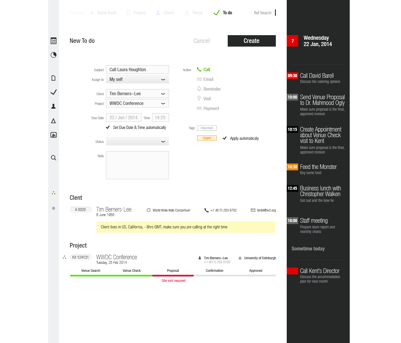 This desktop web application has been designed for Venue Event’s managers to make the booking venue process as slick as possible and visually simple and intuitive.