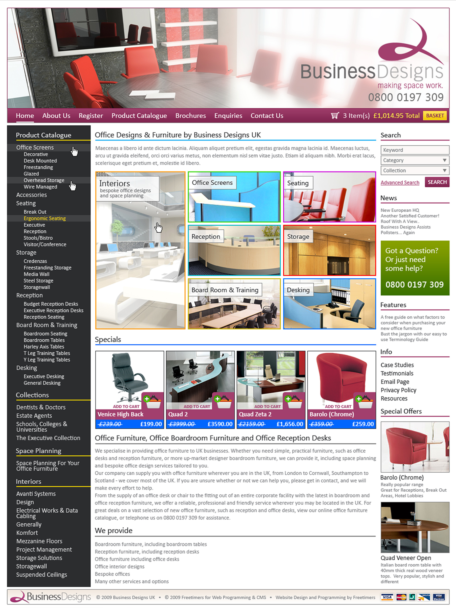 Range of the website designs, covering a variety of businesses, clients and styles.